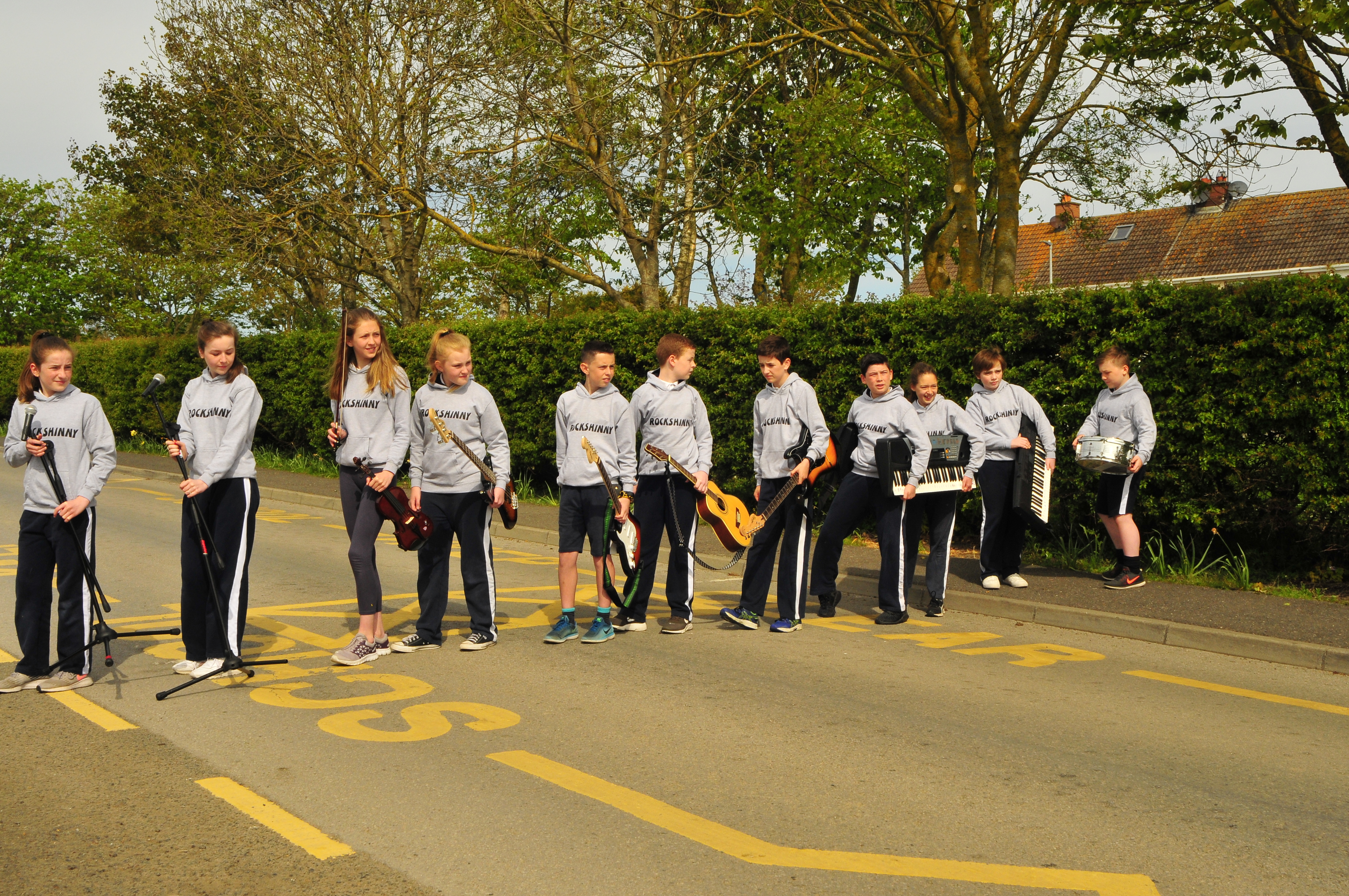 On May 24th Rockshinny played their first gig at St Maur’s G.A.A. club. Our school rock band had been practicing all year and performing at various assemblies throughout the year, but this was their first official gig as a band. The whole school community got behind this fantastic project led by Mr Rory Keary . St Maur’s kindly gave us the venue for the event, which was packed to the rafters and the atmosphere on the night was epic. The band , dressed in their personalised hoodies, kindly sourced by Sharon Rudden, took to the stage at approximately 7 p.m. and rocked St Maur’s for nearly two hours with classic rock anthems like “Smells like Teen Spirit” and “Zombie” by the Cranberries. We were all so proud of the band and it was a fantastic positive bonding experience for everyone involved. WE hope it might lead to something even more epic in the future.